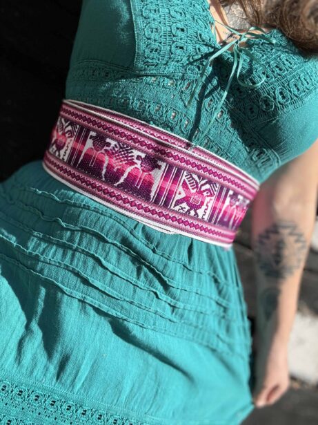 Mexické Chiapásky doporučuje i naše skvělá porodní asistentka. Cítím se ukotvena ve svém vlastním středu. Vnímám své hranice a pevnost v sobě samé. Pás mi dodává sílu a je zdrojem mé stability. Pás je symbol ženskosti a uctění plodnosti Anna Kohutová
