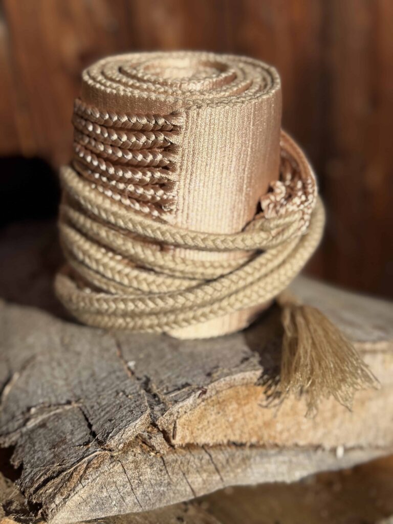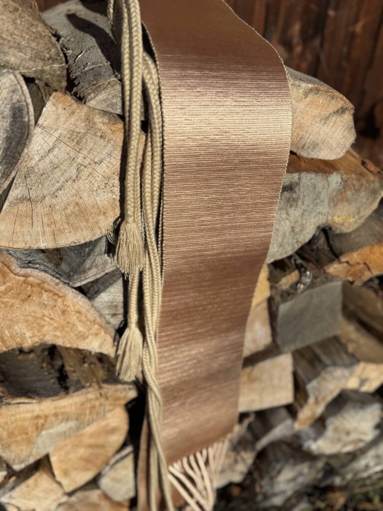 Nádherná oblíbená lesklá béžová faja, vhodná na všechny příležitosti. 180 cm dlouhá..pokryje i větší bříška. 12 cm široká. Elegantní kráska. Nová. Utkaná v Chiapase.