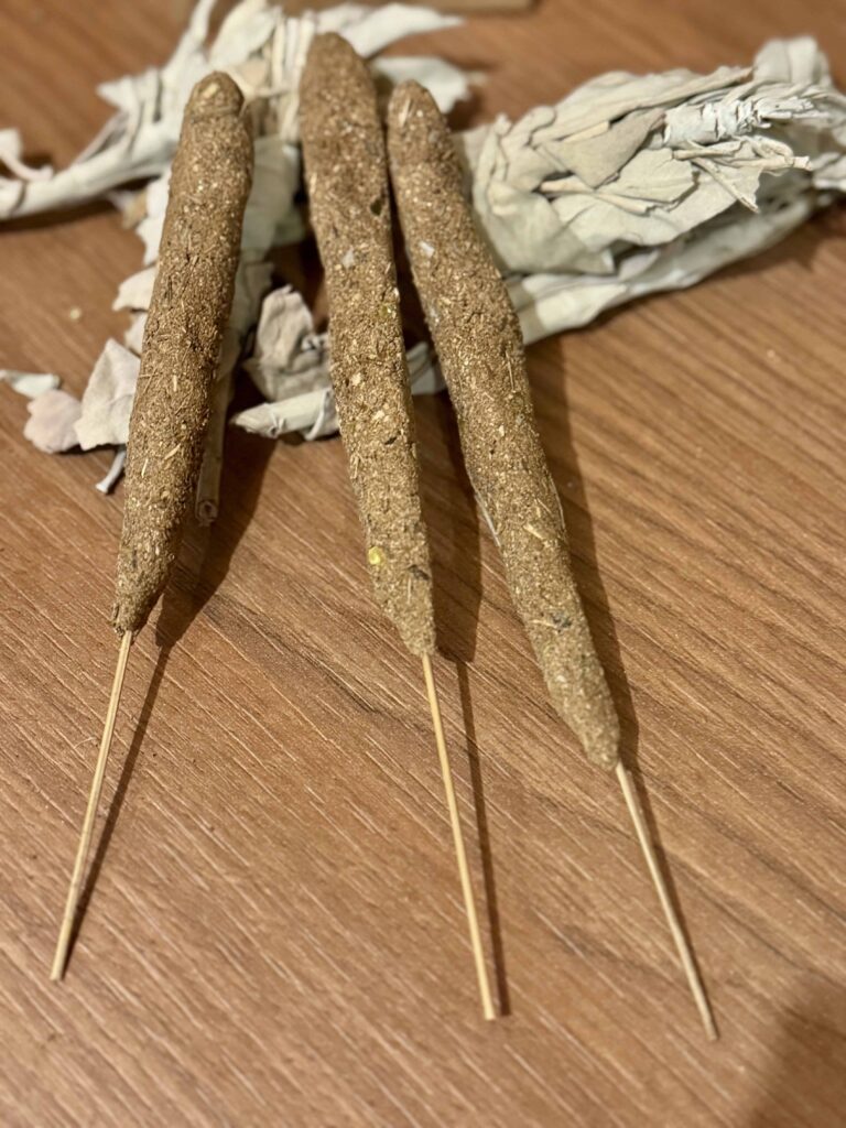 🌿 PELYNĚK & BÍLÁ ŠALVĚJ & ŠPETKA KOPALU ✨ Popis Tahle tyčinka je silný čistič a ochránce. Je stvořená pro rituály, nové začátky a energetické uvolnění všeho, co už v našem životě nemá být. Pelyněk dodává odvahu a sílu, bílá šalvěj přináší světlo, klid a ochranu. A špetka kopalu probouzí celou směs do jemnější, světelnější vibrace. Dohromady vytvářejí posvátný, klidný a hluboce očištěný prostor. 🌿 Složení • pelyněk • bílá šalvěj • špetka kopalu • makko 🍃 Účinky jednotlivých složek Pelyněk – velmi silná očista, odvádí staré a těžké energie, dodává odvahu a vnitřní sílu. Bílá šalvěj – harmonizace, ochrana, přináší světlo, klid a pocit “nového začátku”. Kopal (špetka) – podporuje světlo, jemnou očistu, zvyšuje vibraci celé směsi a propojuje s intuicí. Makko – přírodní pojivo, které drží směs pohromadě a umožňuje pomalé, čisté hoření.